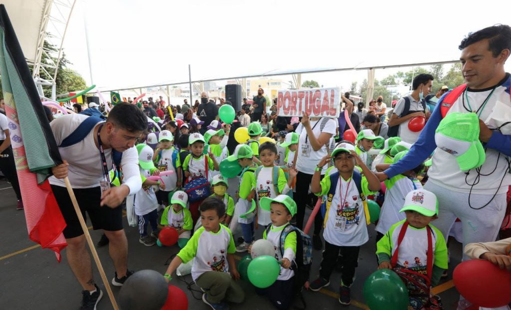 Durante el encuentro, las y los participantes convivieron con el mandatario quien pudo ver la ordenada organización de cada uno de los equipos a quienes se les asignó nombres de países.