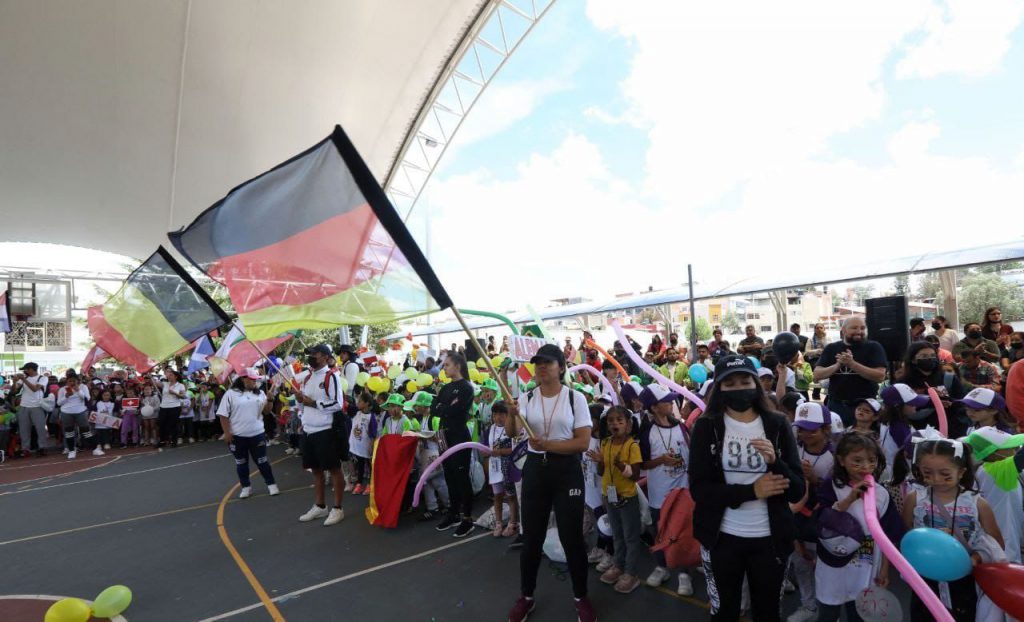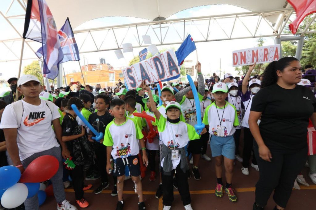 Durante el encuentro, las y los participantes convivieron con el mandatario quien pudo ver la ordenada organización de cada uno de los equipos a quienes se les asignó nombres de países.