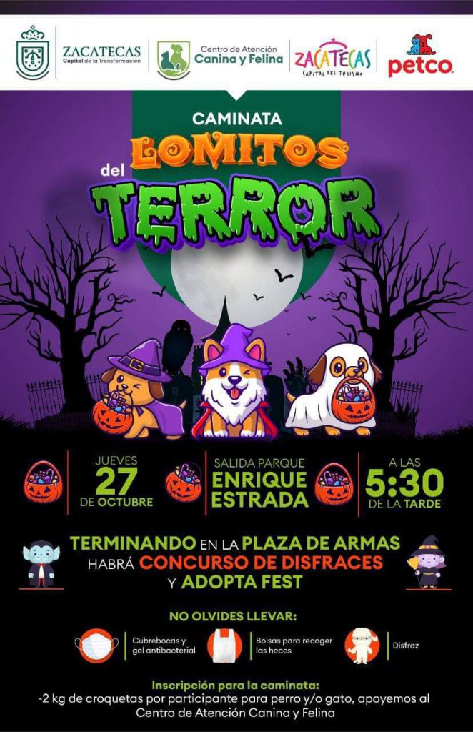 José Flores, subsecretario de Turismo de la capital, añadió que la actividad canina se realizará el jueves 27 de octubre partiendo de la Avenida González Ortega para finalizar en Plaza de Armas; y la inscripción serán dos kilos de alimento para perros que serán donados al Centro de Atención Canina y Felina.