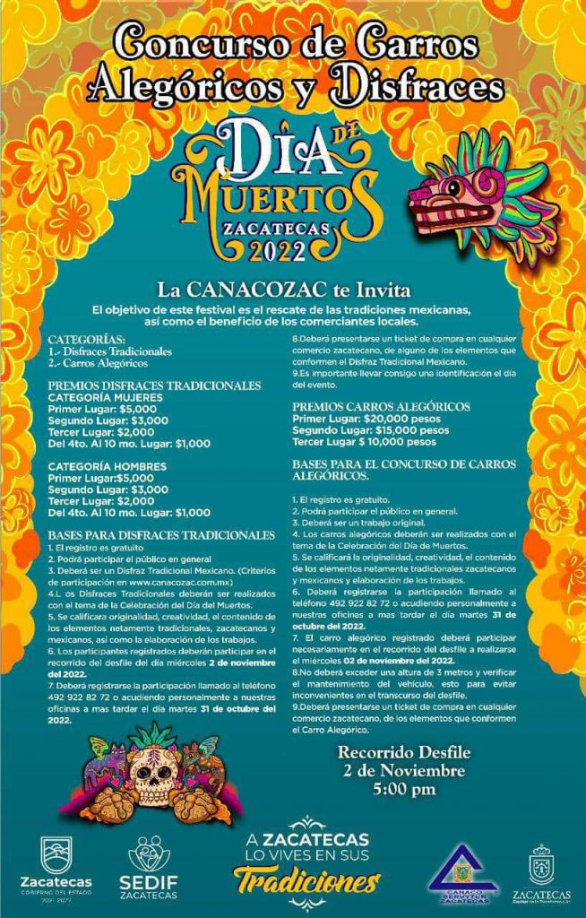 Una actividad de suma importancia para este Día de Muertos es el Concurso de autos alegóricos y disfraces, que se realiza de la mano con Gobierno del Estado y con la Cámara de Comercio.