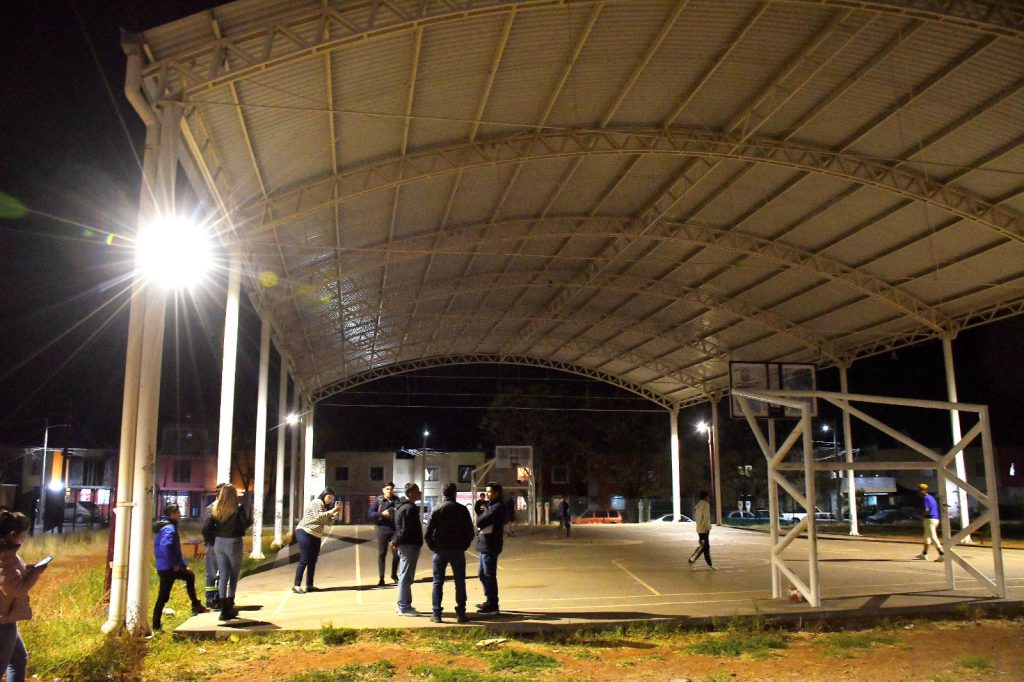 “Nos da mucho gusto que los espacios públicos que iluminamos con esta nueva tecnología ya son más visitados por las familias”, dijo en referencia a que en ese momento se encontraba un grupo de jóvenes practicando futbol en la cancha de El Vergel.