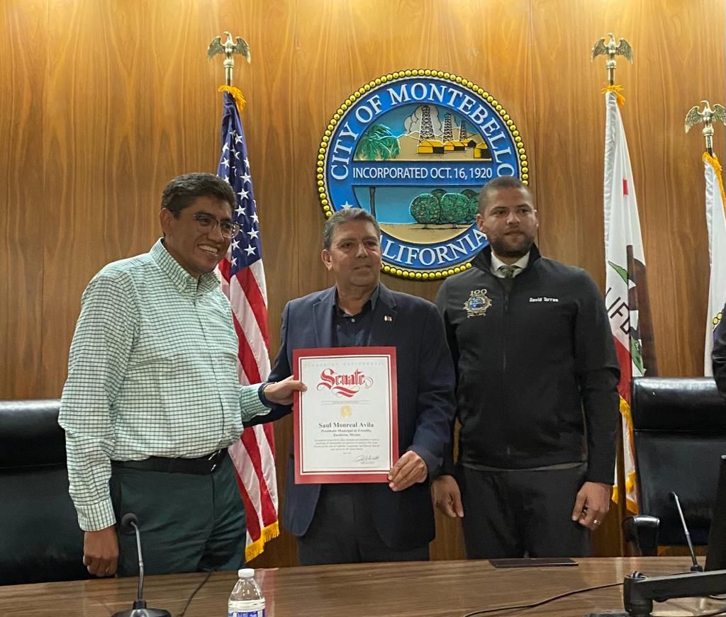 De igual modo, a nombre del senador Bob J. Archuleta, representante del 30º. distrito, Saúl Monreal Ávila recibió un reconocimiento por su incansable esfuerzo, dedicación y compromiso de trabajar priorizando a los ciudadanos fresnillenses que representa.