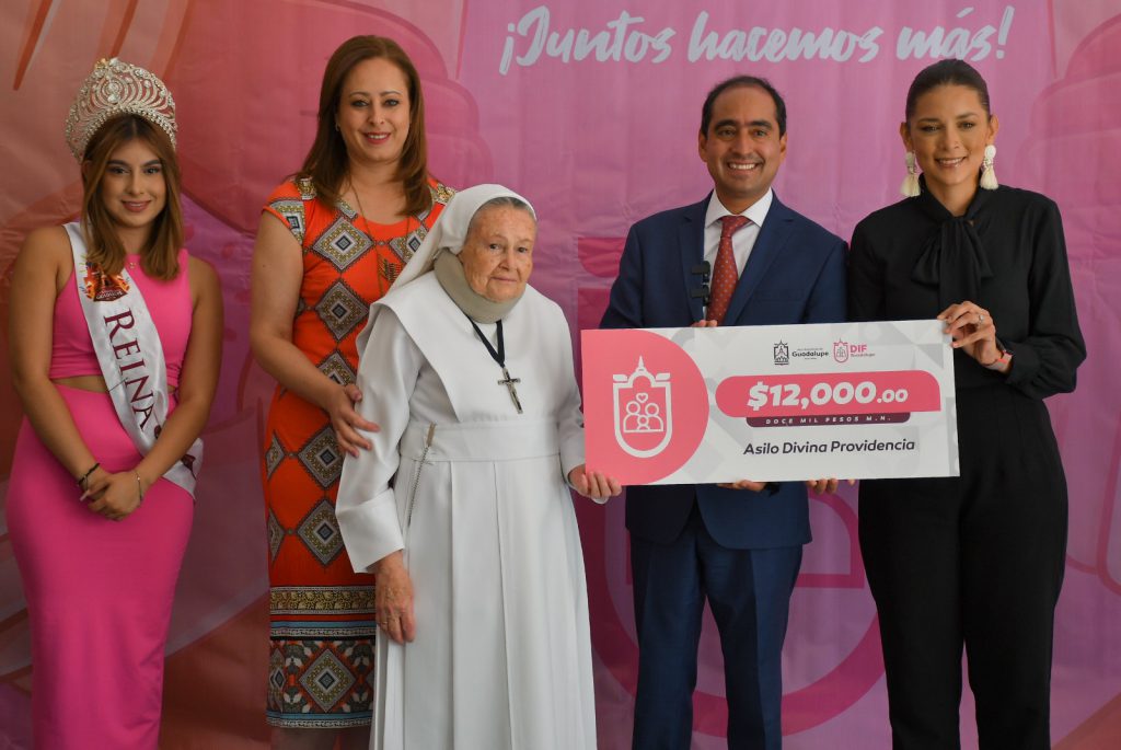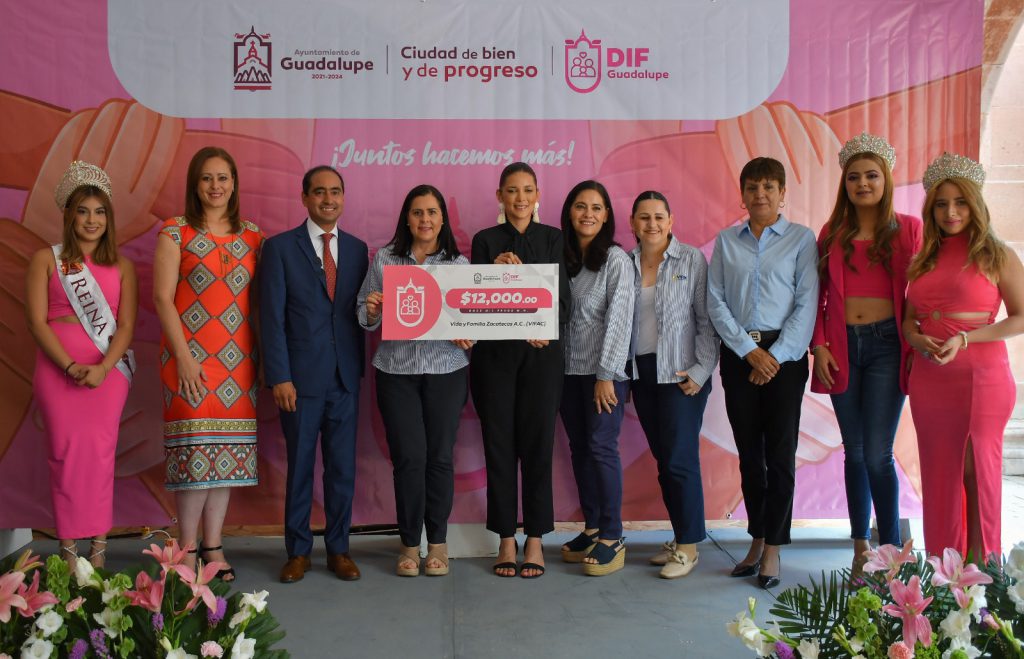 Esta entrega de donativos supera los 143 mil pesos y se obtuvieron a través de la dinámica implementada en el proceso de selección de la reina de la Feria Estatal de Guadalupe en su edición 2022, donde las candidatas trabajaron arduamente y a través de su intensa labor lograron recaudar 37 mil pesos, más una aportación superior a los 107 mil pesos por parte del Sistema Municipal DIF.