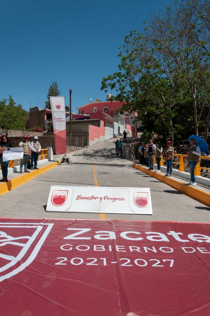 Genaro Codina, 08 de junio de 2023.- El Gobernador David Monreal Ávila cumplió a la población de Genaro Codina ya que, luego de la contingencia que sufrió este municipio y que provocó la destrucción de infraestructura, este día, les entregó la reconstrucción de uno de los puentes vehiculares que conecta a la cabecera, así como la reposición del principal colector de agua de la demarcación.