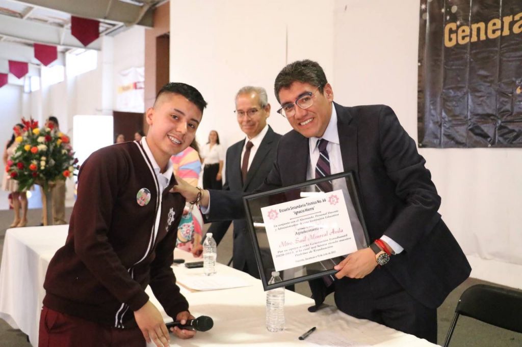 El director de la institución, José Luis González Lira, reconoció el esfuerzo de los estudiantes, quienes por tres años dieron lo mejor de sí y hoy se les recompensa. Agregó que la secundaria técnica 66 forja a sus alumnos con respeto a los derechos humanos y al país.