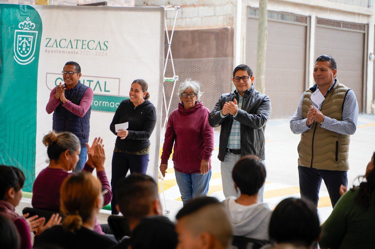 Zacatecas, Zac. El alcalde de la Capital, Jorge Miranda Castro, inauguró la pavimentación con concreto hidráulico de la calle Tixoc, ubicada en la quinta sección de la colonia González Ortega.