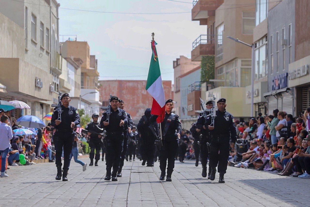 También desfilaron elementos de la Guardia Nacional, Policía de Seguridad Pública Municipal, así como la Cruz Roja y la Unidad de Protección Civil y Bomberos. Esto para dar paso al contingente cívico integrado por 37 instituciones educativas.
