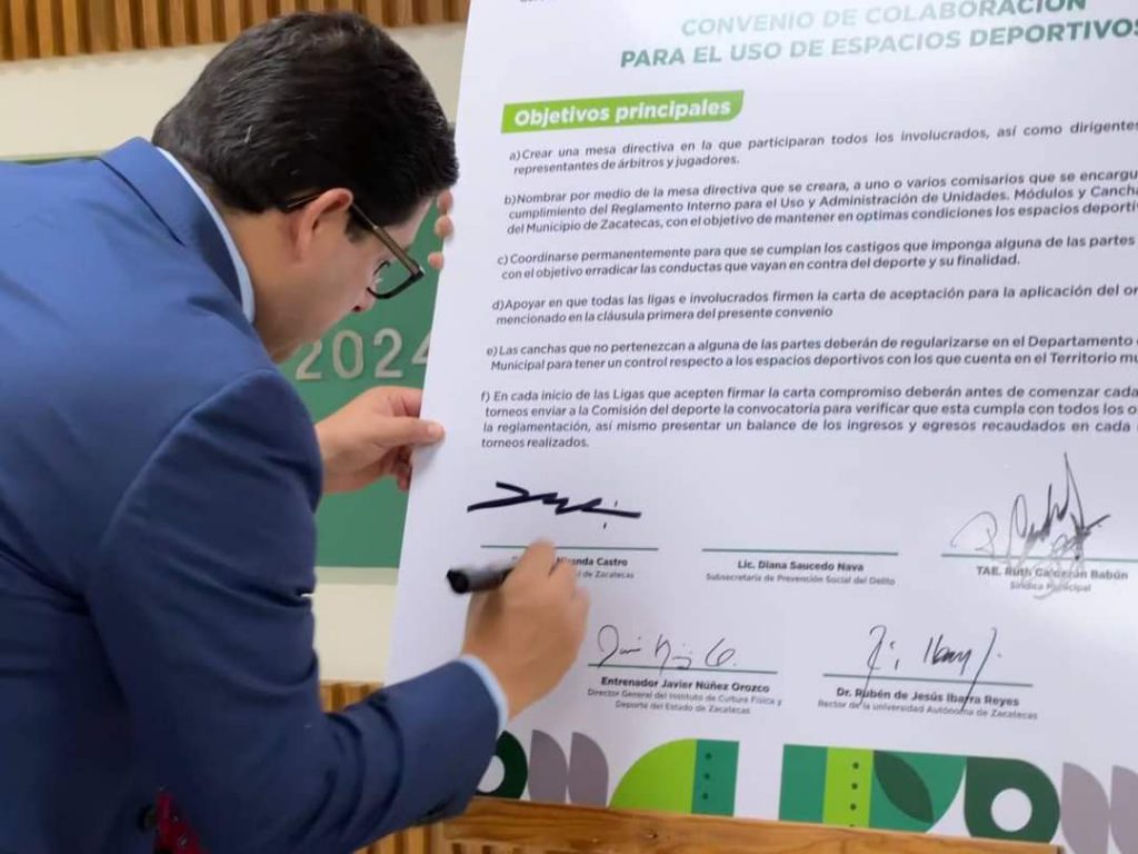 Germán García, titular del Departamento del Deporte de Zacatecas, mencionó que dicho convenio es un ejemplo para los demás espacios deportivos en materia de erradicación de violencia.