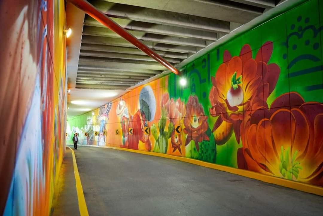 • La obra se ubica en el paso a desnivel de Plaza Bicentenario y muestra el Cerro de La Bufa y la Catedral Basílica.