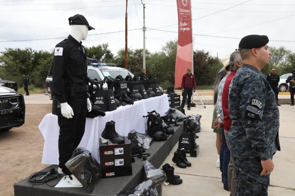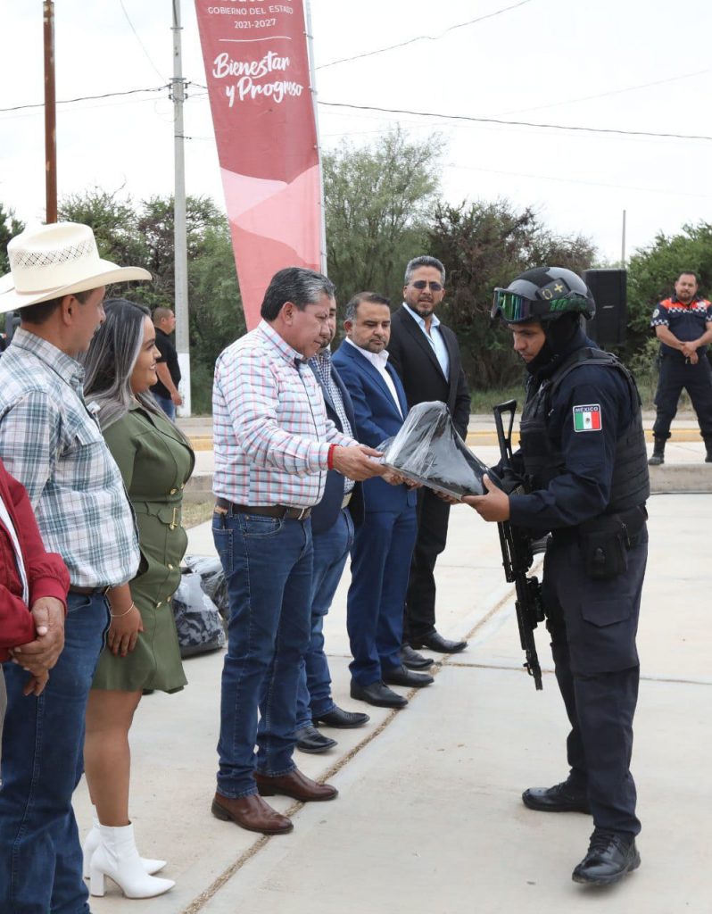 Río Grande, Zac., 04 de octubre de 2023.- Para reforzar los esfuerzos que permitan la pacificación del estado, el Gobernador David Monreal Ávila entregó equipamiento por 18 millones de pesos a los municipios que conforman la región oeste y noreste del estado; gracias a ello, ahora cuentan con patrullas nuevas, ambulancias y uniformes para sus corporaciones.