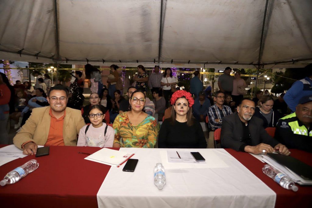 Rita Quiñones de Luna, Regidora del H. Ayuntamiento junto a Reynaldo Beache Pérez, director del Instituto Municipal de Cultura, acompañaron a la rectora de la UAF, Geovanna Cabrera Girón a ser jueces de tan conmemorativo desfile.