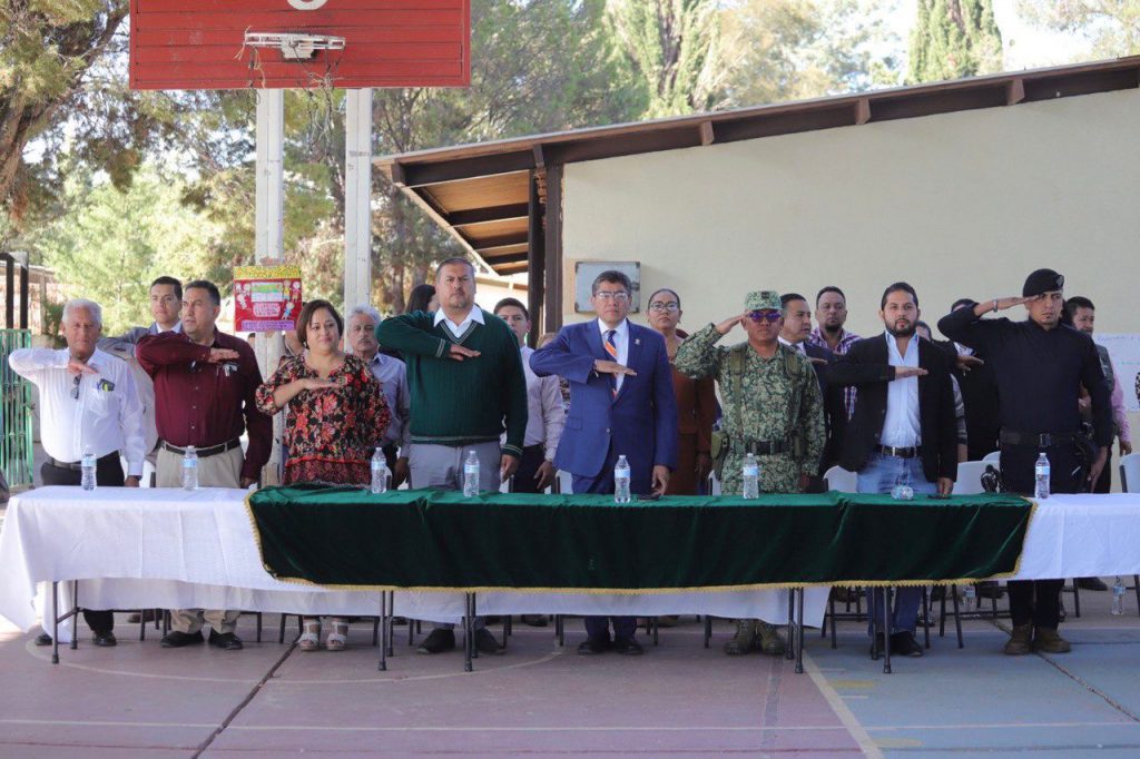 Fresnillo, Zac.- Para dar continuidad a la promoción de los valores cívicos en Fresnillo, el presidente Saúl Monreal Ávila visitó la escuela primaria “Álvaro Obregón”, en la colonia Industrial, donde encabezó los honores al Lábaro Patrio.