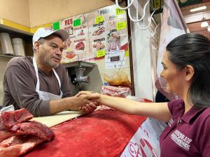 Fresnillo, Zac. – La candidata a la presidencia municipal, Bennelly Hernández Ruedas, se reunió con los locatarios del Mercado Hidalgo, para construir juntos un plan estratégico que favorezca la reactivación de la economía de los comercios locales.