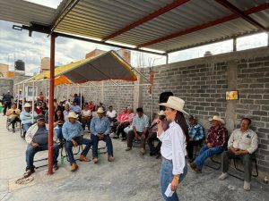 Fresnillo, Zac. – Este miércoles, la candidata a presidenta municipal por la coalición Sigamos Haciendo Historia, Bennelly Hernández Ruedas, tuvo un encuentro con agricultores y ganaderos de diversas comunidades de El Mineral, para trazar rutas estratégicas que contribuyan al rescate del campo.