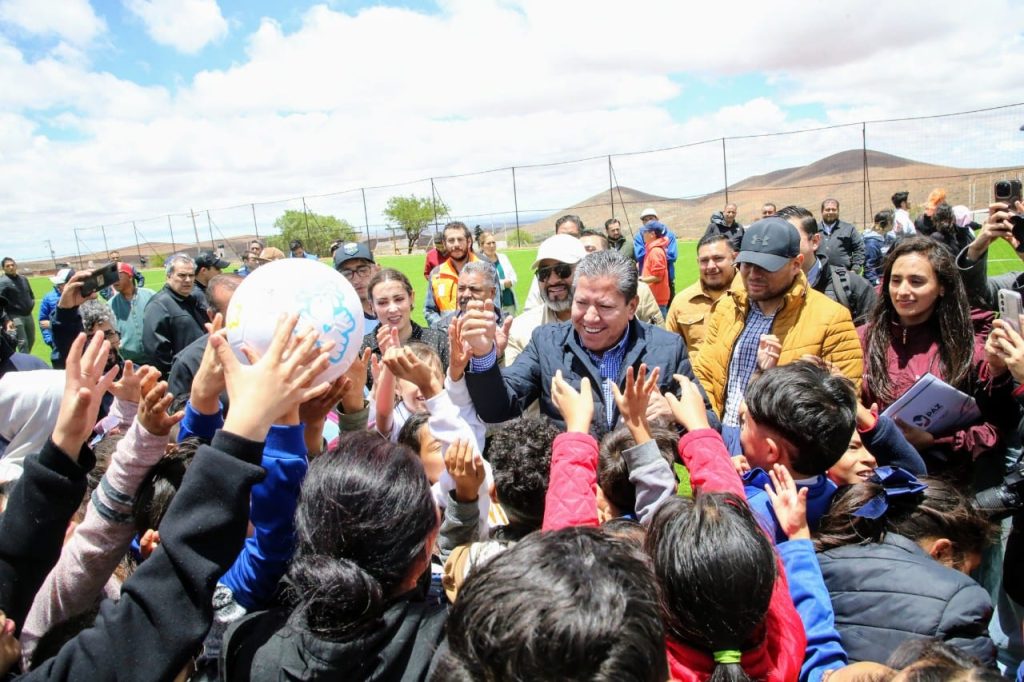 Inaugura Gobernador David Monreal junto con directivos de Pachuca, Cruz Azul, Chivas y Mineros cancha de pasto sintético en Pánuc