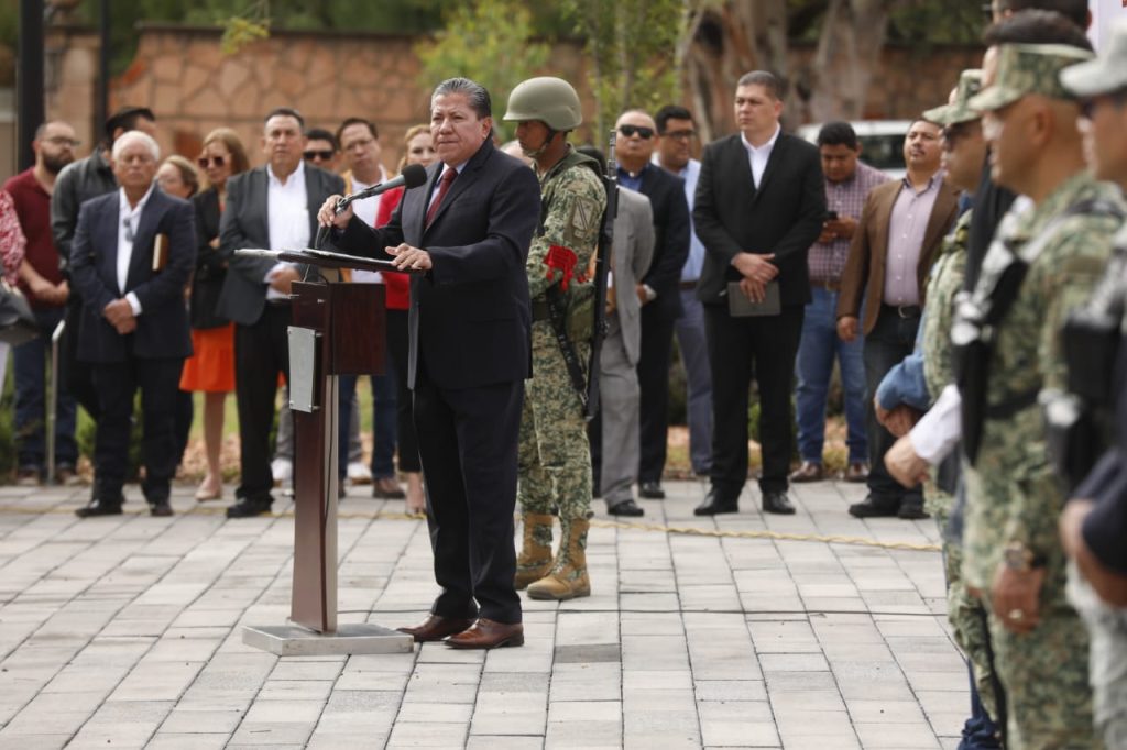 En los Honores a la Bandera también estuvieron presentes Rodrigo Reyes Mugüerza, secretario general del Gobierno; Arturo Medina Mayora, secretario de Seguridad Pública; Alejandro Vargas González, comandante de la Decimoprimera Zona Militar; Juan Manríquez Moreno, coordinador estatal de la Guardia Nacional.