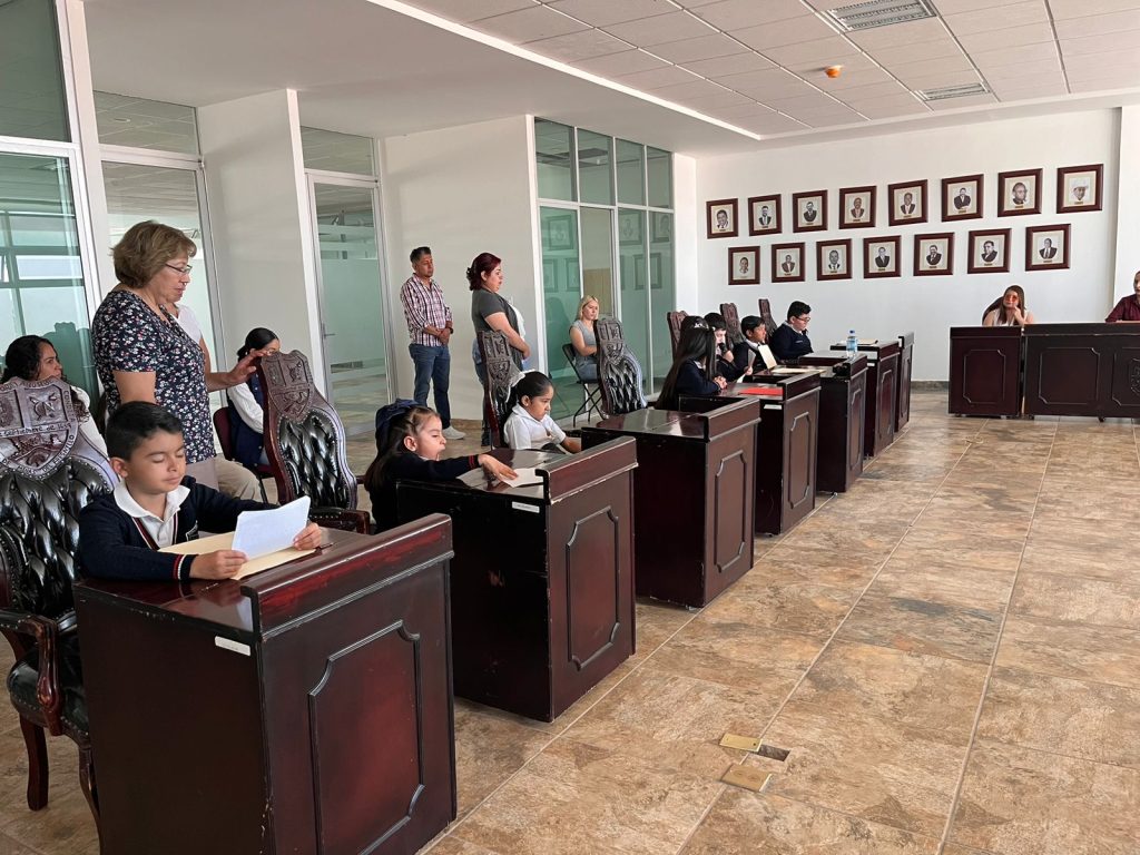 En representación de la Presidenta Municipal Rita Rocío Quiñones de Luna, Argelia Aragón Galván síndica municipal les dio la bienvenida a los pequeños regidores y juntos dialogaron sobre las principales problemáticas que aquejan al municipio para establecer estrategias que puedan coadyuvar a recomponer los diferentes temas.