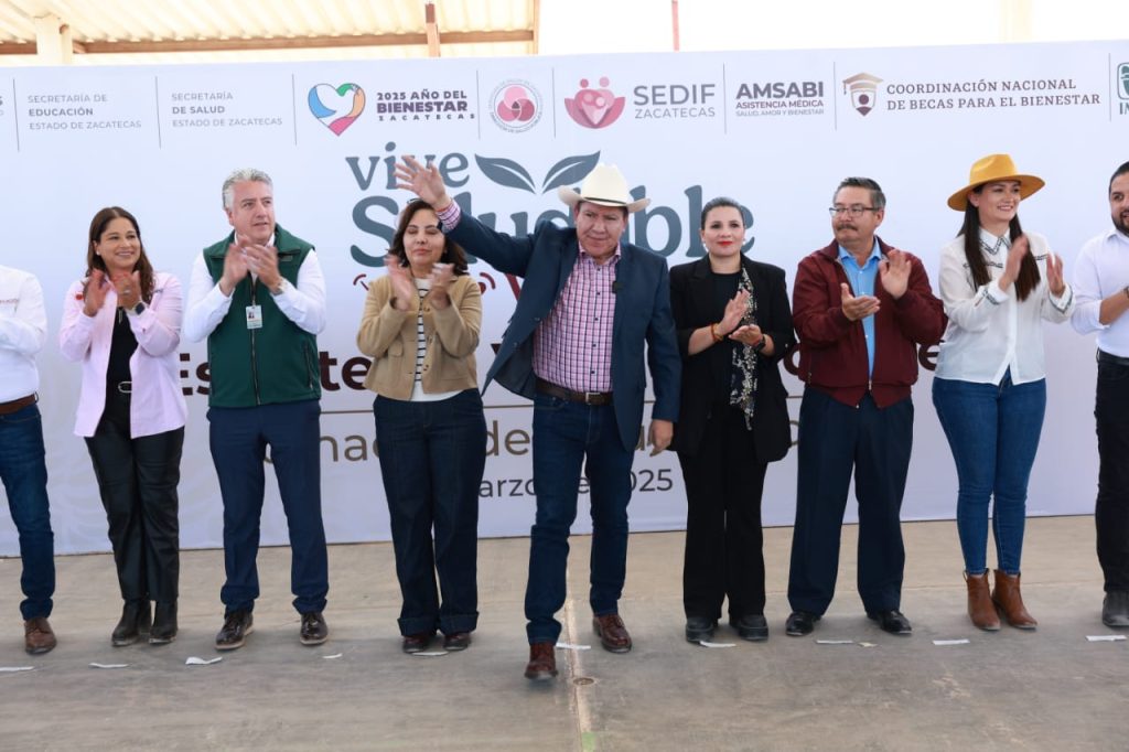 Chichimequillas, Fresnillo, Zac., 12 de marzo de 2025.- En concordancia con las políticas públicas del Gobierno de México, que encabeza la Presidenta Claudia Sheinbaum Pardo, el Gobernador David Monreal Ávila puso en marcha las Jornadas de Salud Escolar “Vive Saludable, Vive Feliz”, que iniciaron en todo el país.