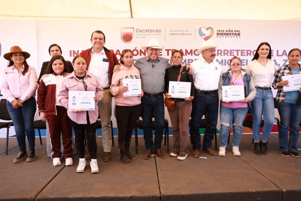 Miguel Auza, Zac., 1 de abril de 2025.- El Gobernador David Monreal Ávila entregó obras para el bienestar de la población del municipio de Miguel Auza: la rehabilitación de cuatro kilómetros de la carretera 20 de Noviembre – Ramón Corona y la renovación de la primaria “Ramón López Velarde”, con una inversión total cercana a los 11 millones de pesos.