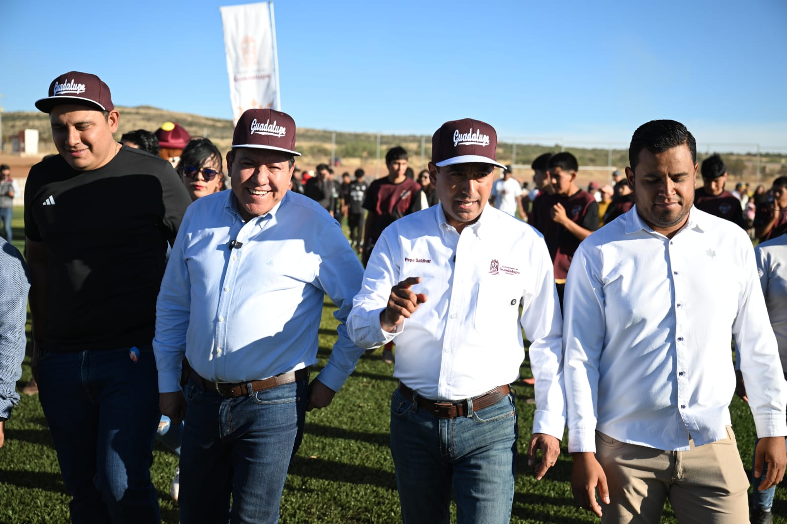 Como como parte de su intensa gira de trabajo por Guadalupe y en su compromiso con el impulso del deporte y el bienestar de las familias, acompañado por el Alcalde José Saldívar, el mandatario estatal refrendó su respaldo a este Pueblo Mágico, que, dijo, merece que se le invierta en el rescate y mejoramiento de sus espacios públicos y de recreación que contribuyan al desarrollo integral de niñas, niños y jóvenes.