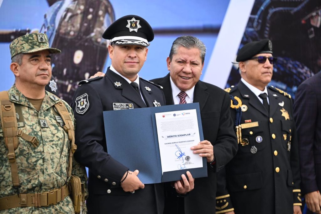 En presencia de Isaac Bravo López, comandante de la Decimoprimera Zona Militar, y Vicente Dimayuga Canales, coordinador de la Guardia Nacional en Zacatecas, Arturo Medina Mayoral, secretario de Seguridad Pública, felicitó a las y los policías que recibieron un reconocimiento como un justo homenaje por su disciplina, valentía y alto sentido del deber y cumplimiento de su responsabilidad de proteger y servir a la sociedad zacatecana.