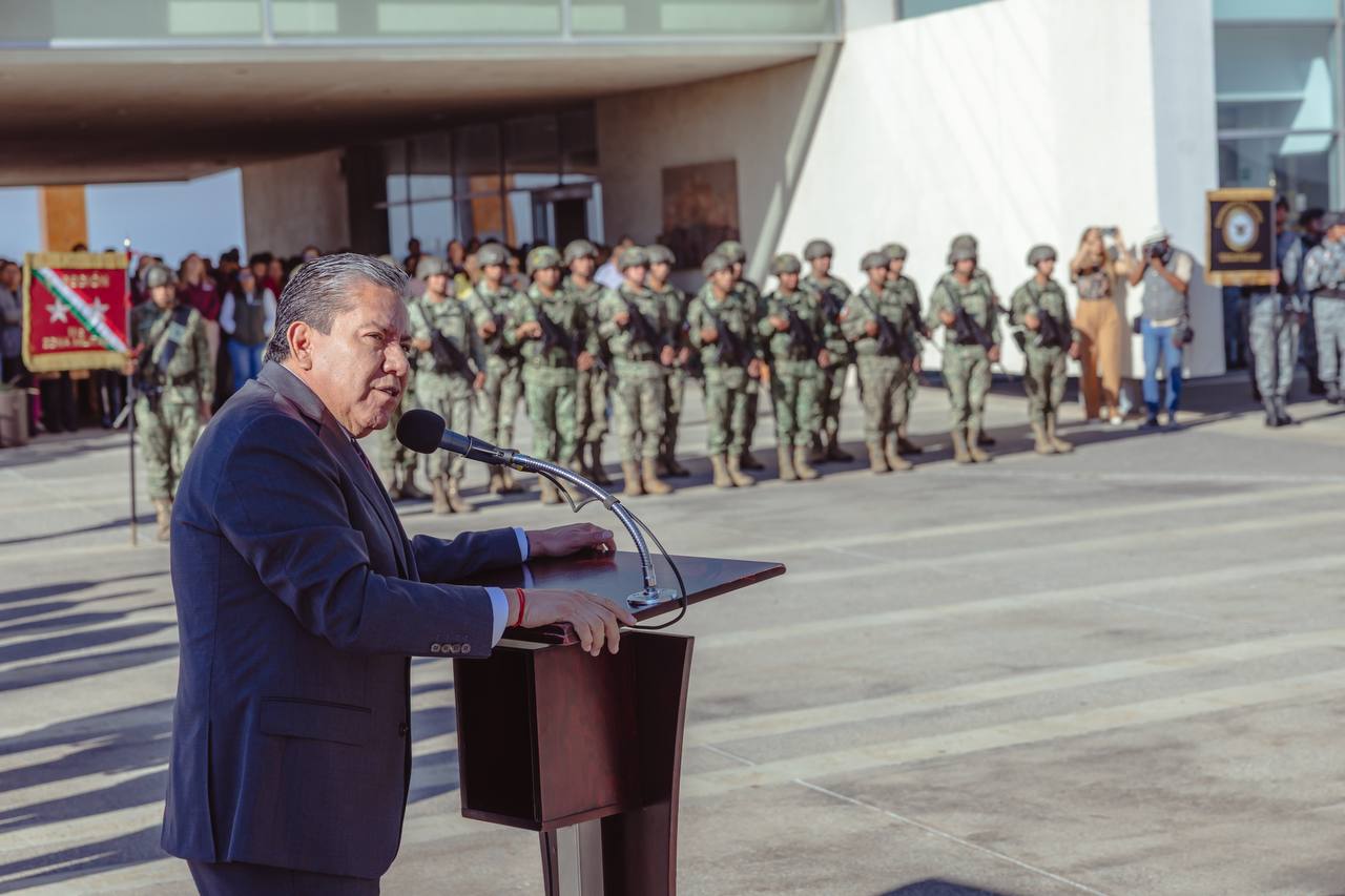 En el presídium también participaron Rodrigo Reyes Mugüerza, secretario general de Gobierno; Arturo Medina Mayoral, secretario de Seguridad Pública; Isaac Bravo López, comandante de la Decimoprimera Zona Militar; Vicente Dimayuga Canales, coordinador estatal de la Guardia Nacional; Cristian Paul Camacho Osnaya, fiscal general de Justicia del Estado; Francisco Esquivel Cruz, delegado de la Fiscalía General de la República; así como Osvaldo Cerrillo Garza, secretario técnico de la Mesa Estatal de Construcción de Paz, entre otros.