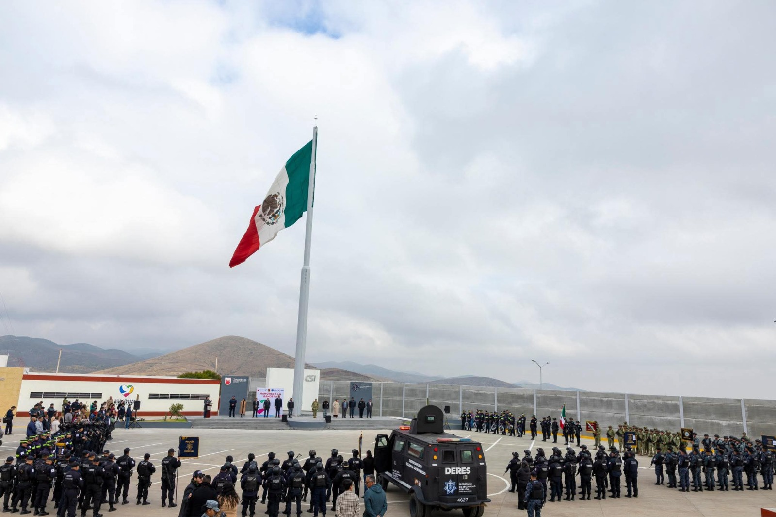 Guadalupe, Zac., 10 de noviembre de 2025.- Desde las instalaciones del nuevo Centro de Control, Comando, Comunicación, Cómputo y Calidad (C5i), en la Ceremonia de Honores a la Bandera, el Gobernador David Monreal Ávila anunció que ya se prepara la Agenda del Progreso 2026, año que será una nueva etapa en la estrategia de desarrollo de Zacatecas.