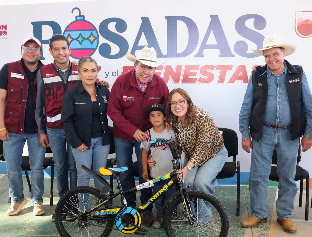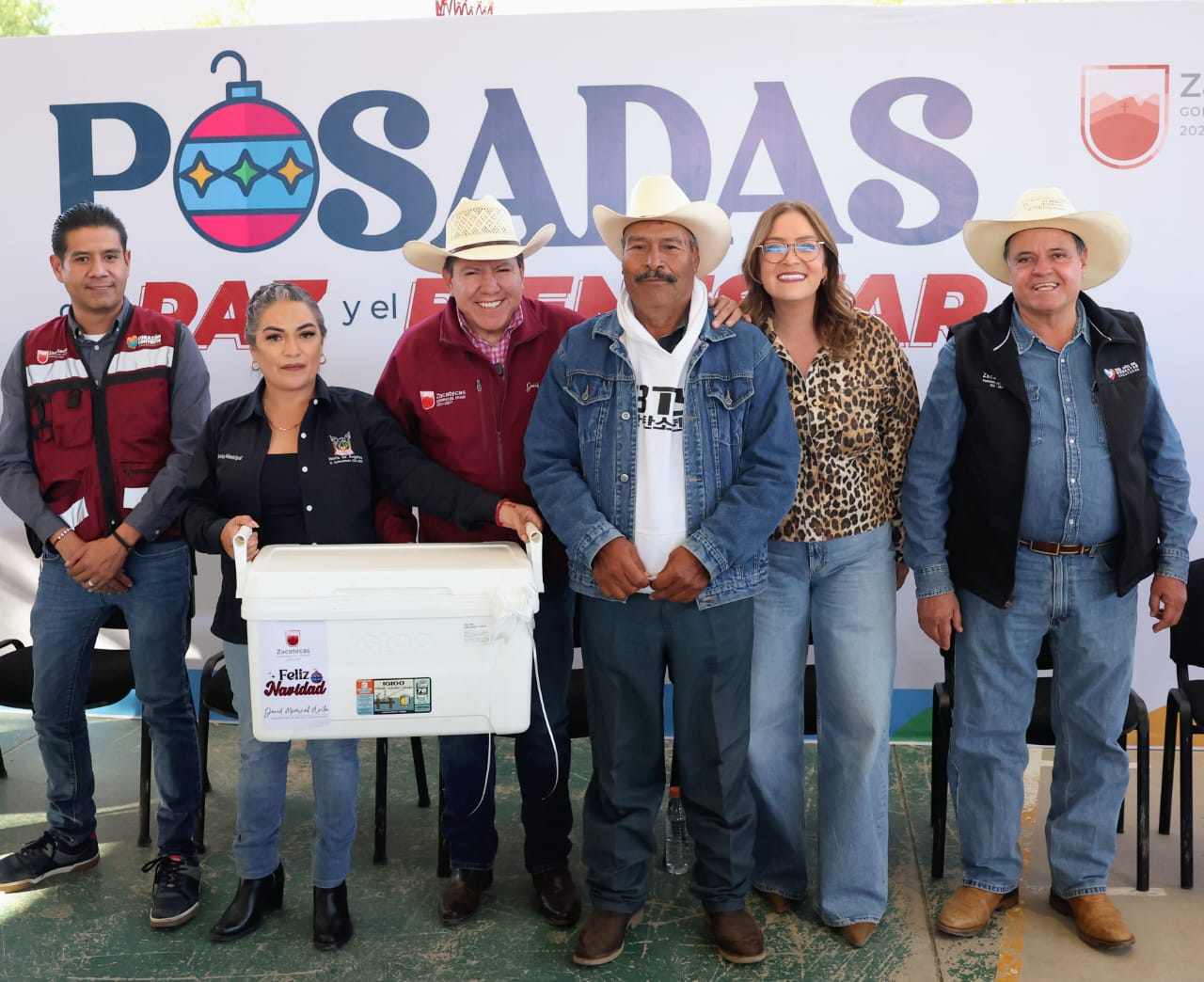 En Noria de Ángeles, con motivo de la Posada de la Paz y el Bienestar, el Gobernador David Monreal Ávila encabezó la entrega de 538 paquetes alimentarios del programa Corazón Contento para igual número de familias, así como 300 juguetes y bolos para niñas y niños, así como presentes para los adultos del municipio.