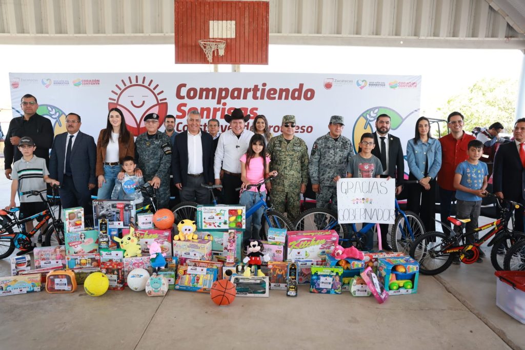 Tabasco, Zac., 7 de enero de 2026.- Tras encabezar la Mesa Estatal de Construcción de Paz, el Gobernador David Monreal Ávila llevó el programa Compartiendo Sonrisas, Construyendo Progreso, una estrategia de atención integral con enfoque prioritario en la niñez, las juventudes, las mujeres y los sectores productivos.