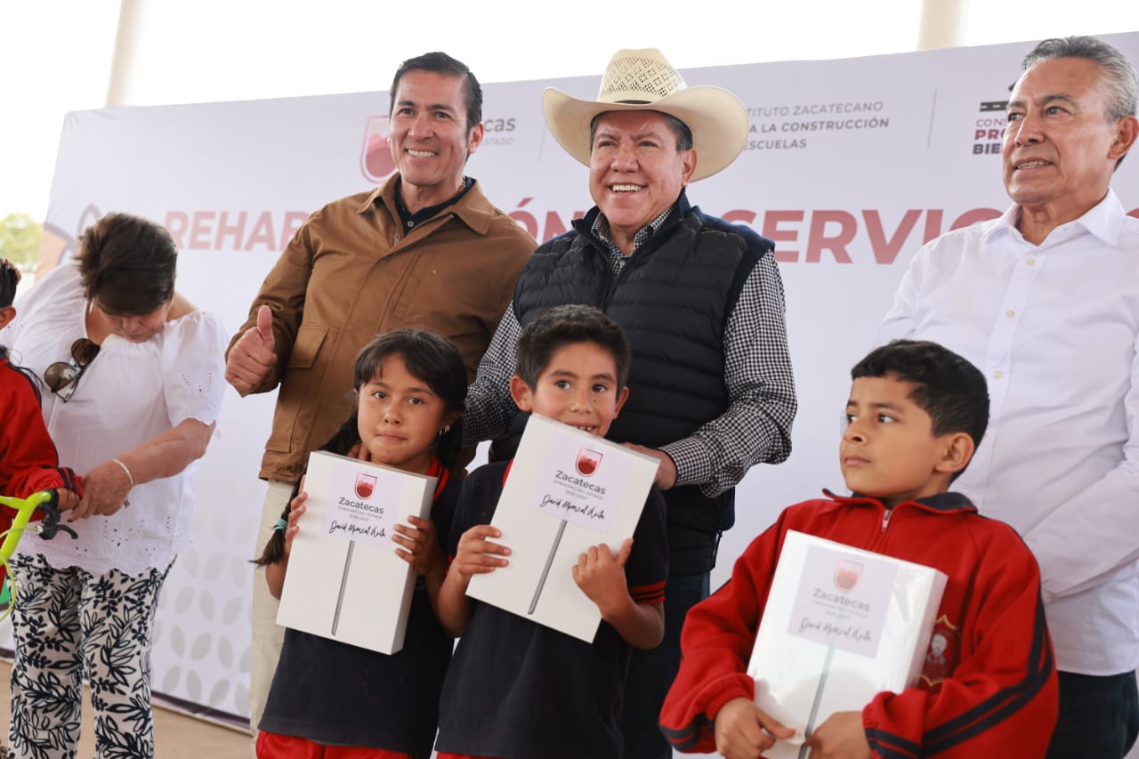 El Gobernador David Monreal destacó que para este 2026, Año del Progreso, se tiene una proyección de inversión de 1 mil millones de pesos para infraestructura escolar en toda la entidad, con acciones como instalación de domos, construcción de aulas, así como edificación de nuevas escuelas, cercos perimetrales y otros espacios educativos.
