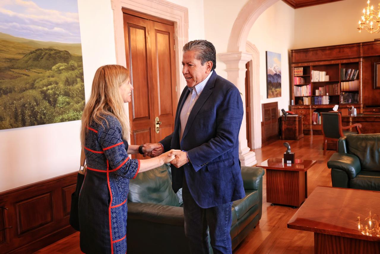 Zacatecas, Zac., 15 de abril de 2026.- Para dialogar sobre los avances de la estrategia de pacificación, que ha convertido a Zacatecas en el estado con la mayor reducción de homicidios dolosos del país, el Gobernador David Monreal Ávila se reunió con Melissa A. Bishop, cónsul general de Estados Unidos en Monterrey, en un encuentro en el que se refrendó el compromiso de fortalecer la cooperación bilateral para la construcción de entornos más seguros.