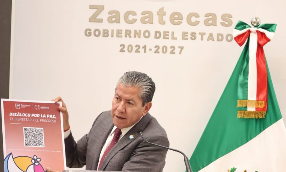 Presenta Gobernador David Monreal Decálogo por la Paz, el Bienestar y el Progreso, con consolidación de reducción histórica de homicidios dolosos